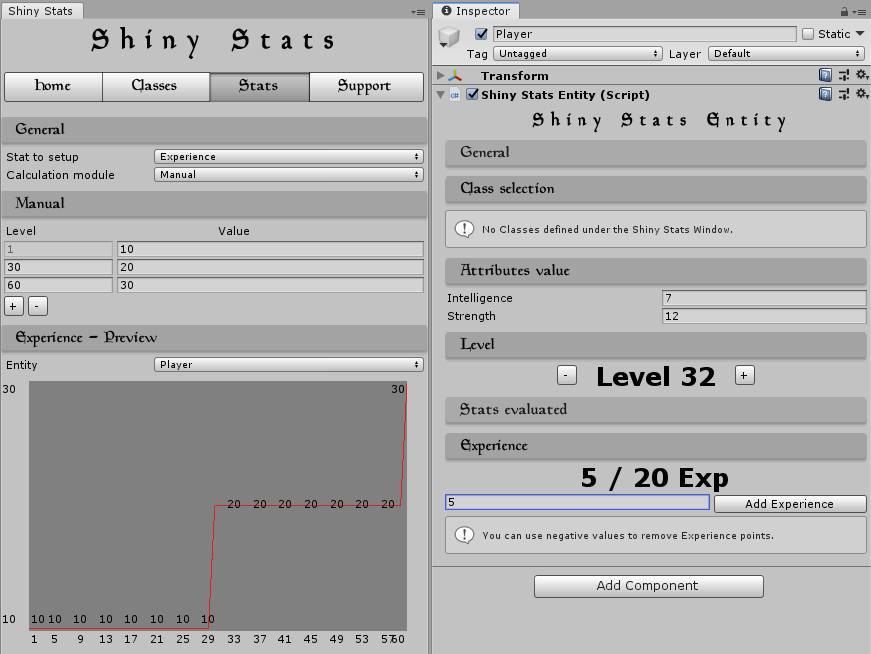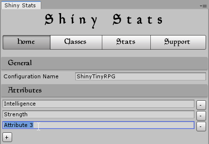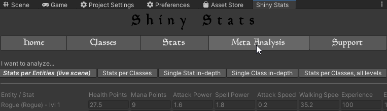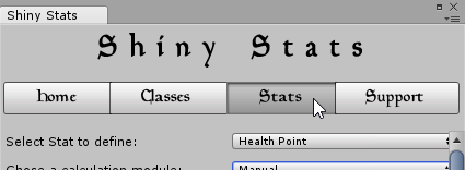 | Shiny Stats Window | Shiny Stats Editor Window in Unity where you setup Shiny Stats. |
