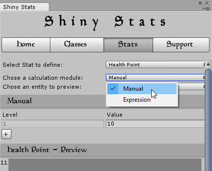 Shiny Stats aims to help those you want to introduce stats into their games; You can create simple to advanced stats mechanisms using Shiny Stats without coding from scratch all the mechanism it involves.