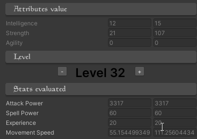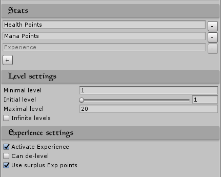 | Experience | Experience points gathered by the entity to reach higher levels. It is a special stat element. |