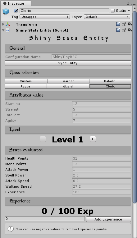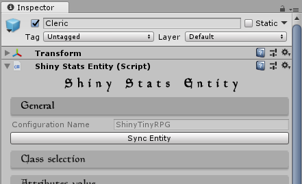 Once the attributes are defined, you can set the attributes values of each entities in their respective Shiny Stats Entity inspector.