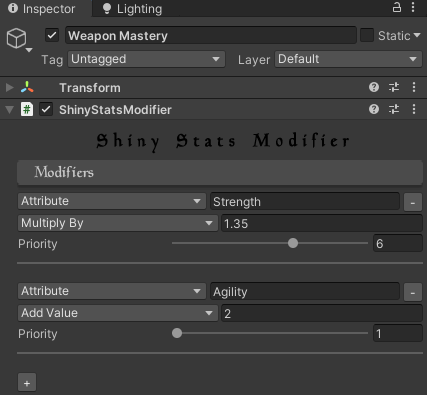 The ShinyStatsEntity automatically detects the presence of ShinyStatsModifier scripts in children (of self)
