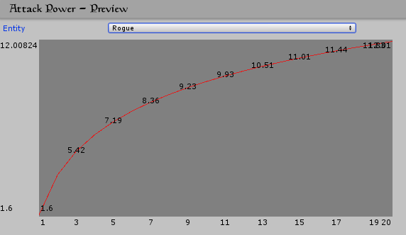 Attack Power = Strength / 5 + Strength * log(Level, 10)