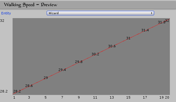 | Class | Health Points (Stamina) | Mana Points (Intellect) | Attack Power (Strength) | Spell Power (Intellect) | Attack Speed (Agility) | Walking Speed (Agility) | Sum |